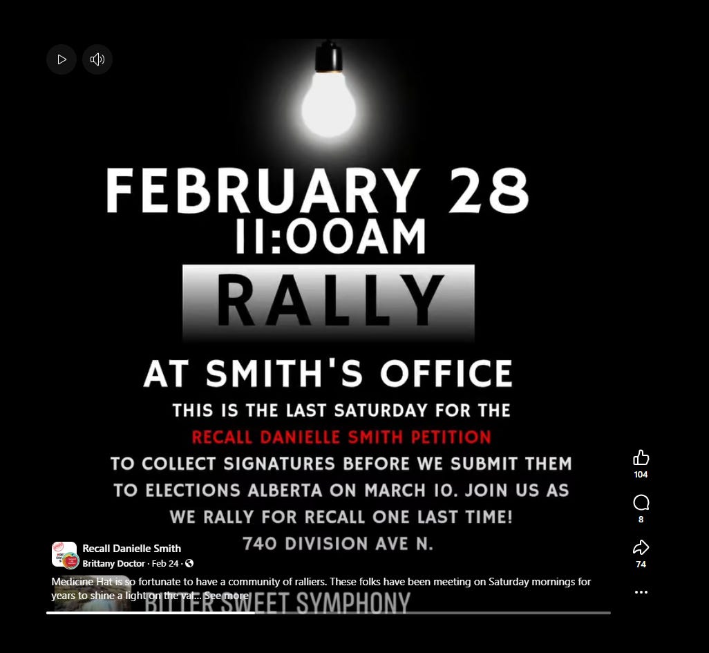 Saturday February 28 will be the last Saturday we rally for recall Danielle Smith. But the rally community will continue to thrive, advocate and educate and normalize free speech and fight against conformity for conformity’s sake.