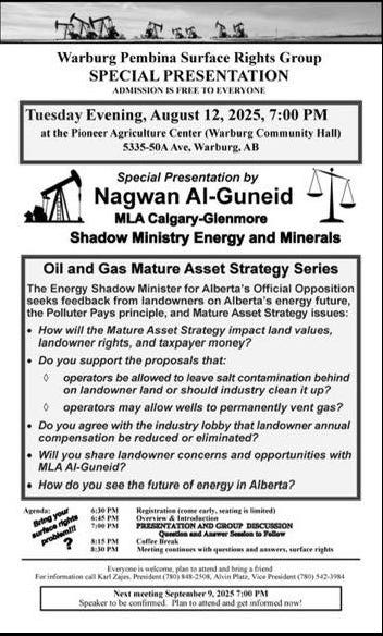 Fort McMurray, August 26, 2025. We will update the location when we know it. Mark your calendars if you can attend. Doors open at 5 pm for the Alberta Next Panel.