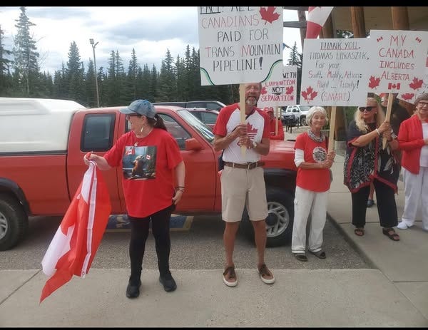 Proud Canadians protesting the Alberta Prosperity Project town hall in Hinton.