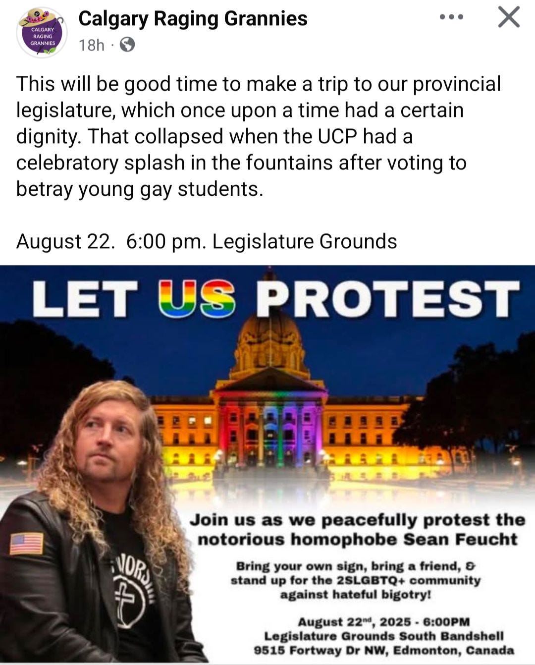 Everyone who is able, please join the protest to stop hate groups like Sean Feucht from spreading his grotesque message while he faces allegations of spiritual, emotional, & psychological abuse as well as financial impropriety in Texas & California. I can't believe we are having this happen in Alberta, Canada. West Kelowna B.C. stood up to this hate group They said NOT in our backyard..