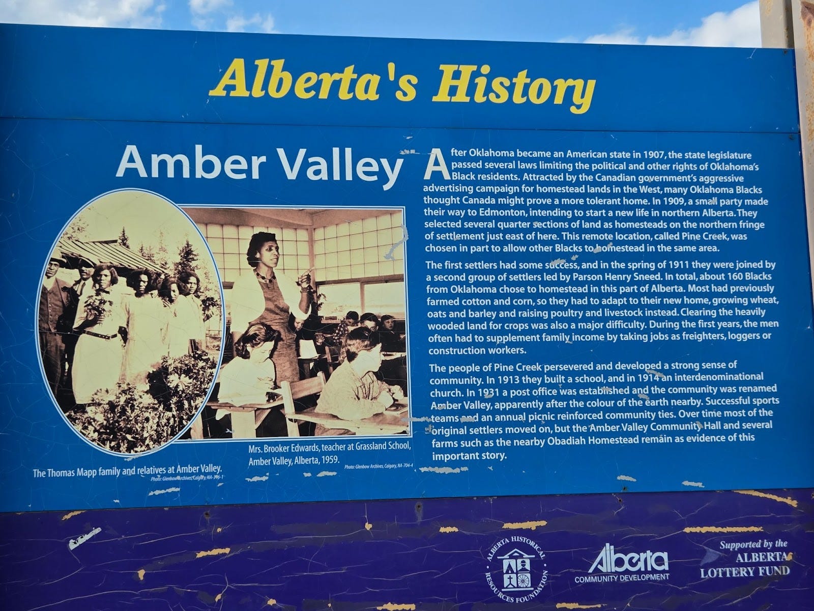 This is Alberta’s History sign on the highway by Amber Valley. In our videos this week I have also included Paula Simon’s History of Amber Valley from 2022.