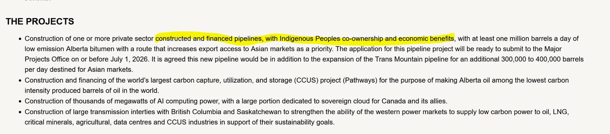 The MOU: Plan for Pipeline and AI Centers. What is the plan to get Indigenous Companies involved?