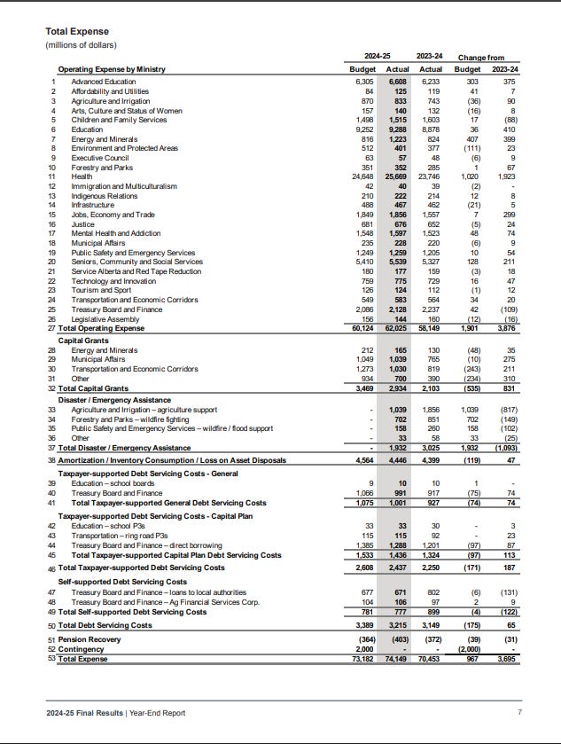 2024/25 - they spent $25.669 billion and we had a population approaching 5 million. The government spent $5133.80 per Albertan, an increase of $374.24 per Albertan.